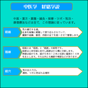 1.中医学 2.陰陽五行学説、3.中医の経典、4.黄帝内経、5.経絡学説、6.経絡の証明